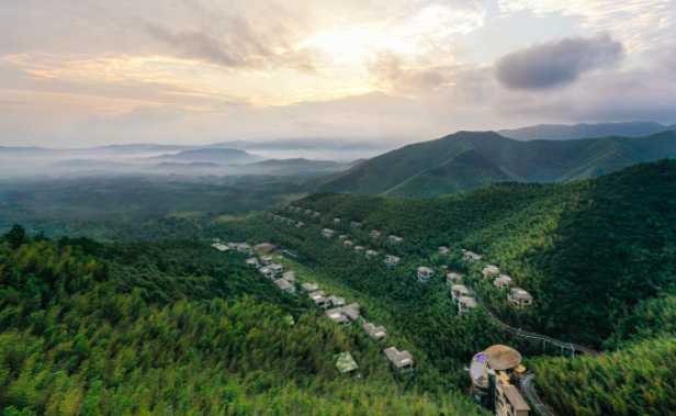 它坐山面水,拥有万亩竹海,你可以像宫崎骏笔下一般,坐红色小火车穿越竹林。