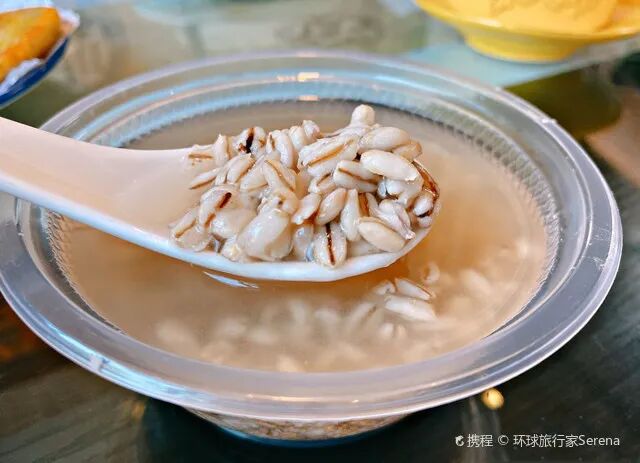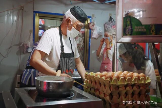 这里声名在外的小吃要数“牛奶鸡蛋醪糟”,排队最激烈的那家便是上过央视的马爷,这小小一碗甜品,用料极其丰富,能吃到葡萄干、花生、芝麻、坚果等,奶和米酒的香气,配上嫩滑爽口的蛋花,男女老少都爱它!