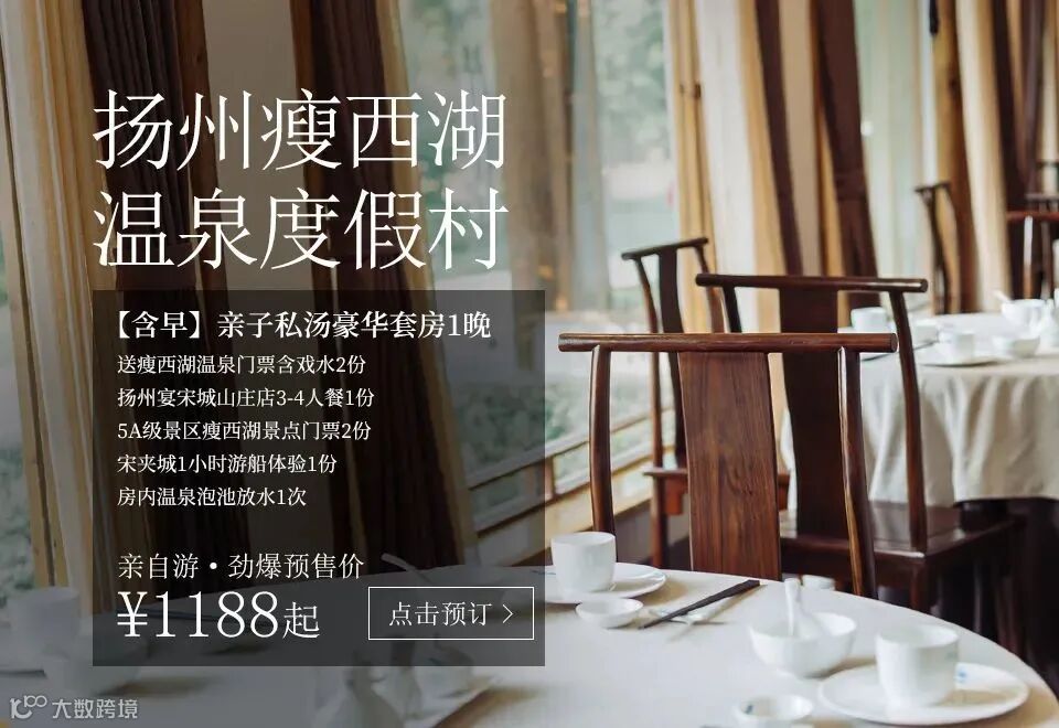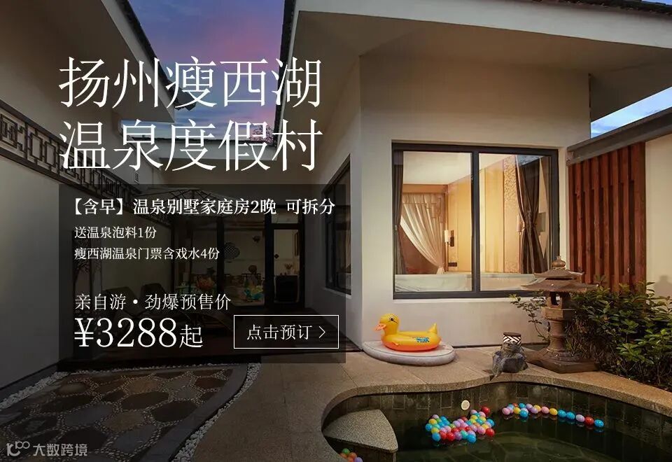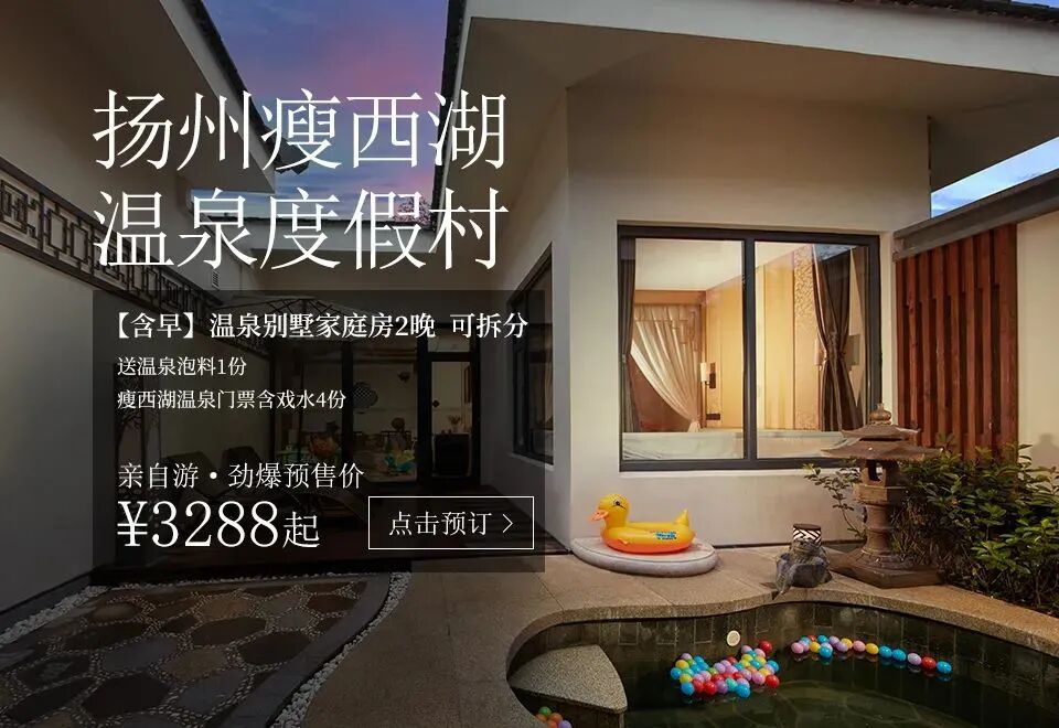 套餐4:3288元起,温泉别墅家庭房2晚,可拆分,送瘦西湖温泉门票含戏水4份