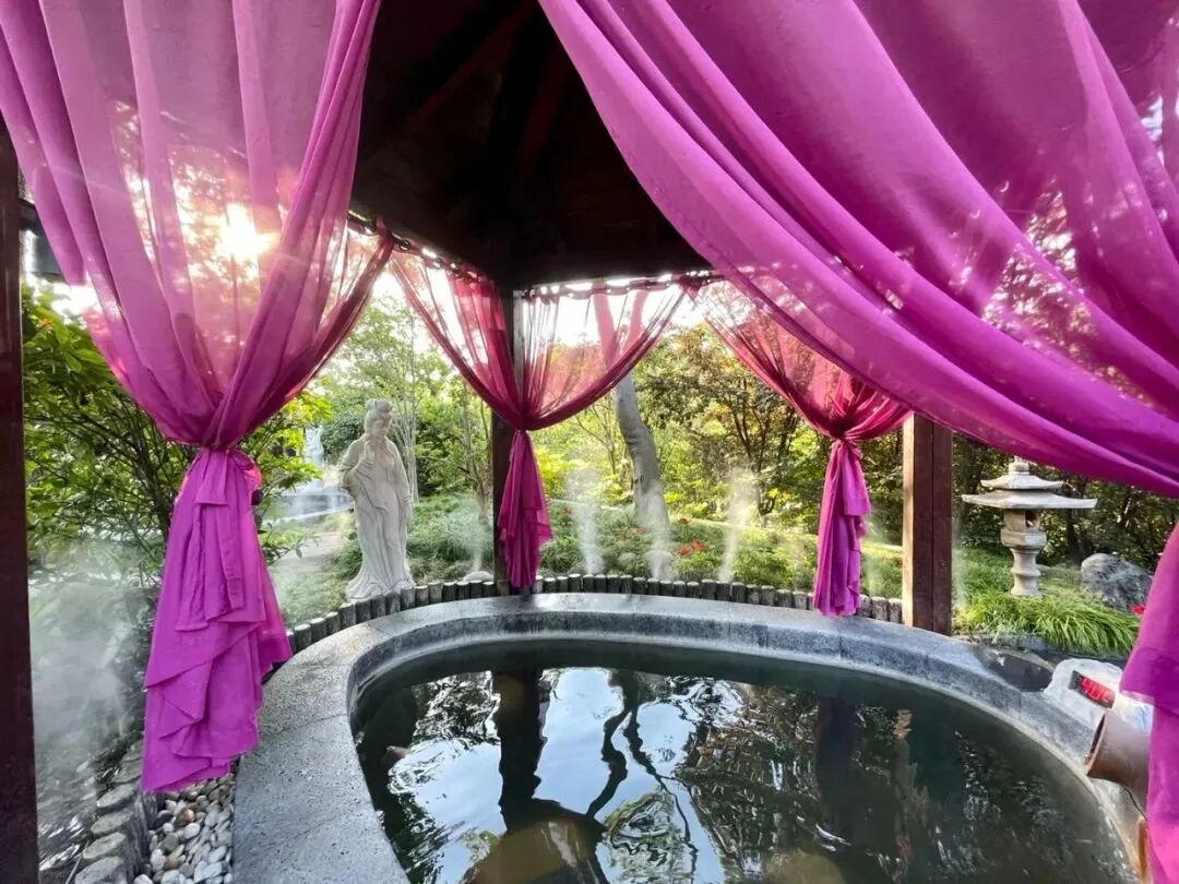 请工作人员放水,他们还会帮你弄些贴心的小布置,将氛围感拿捏的死死的。室外温泉泡完,再回来泡自己别墅的温泉私汤,两种feel我都爱!