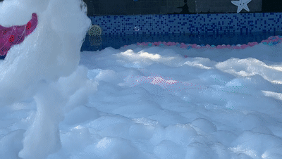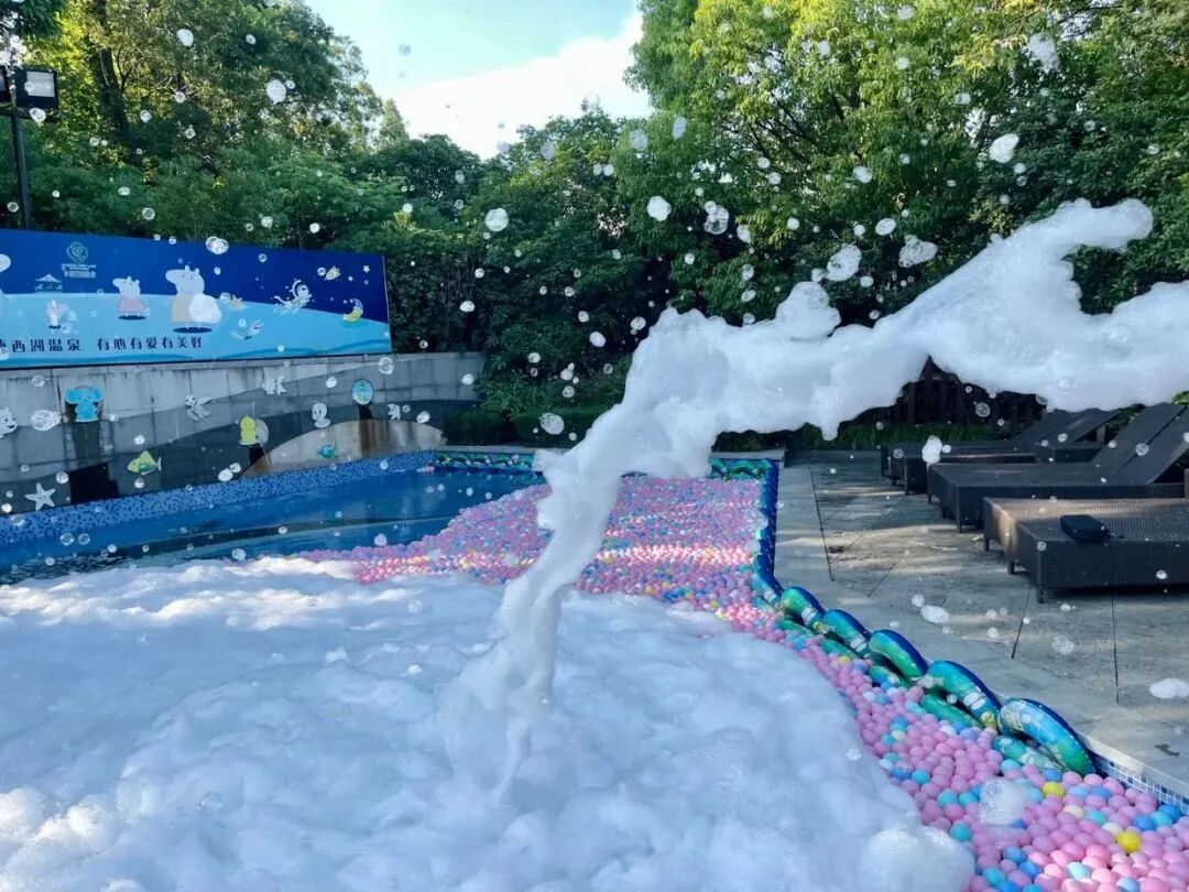 戏水池里原先就洒了很多海洋球。夏天每周六周日的下午2点到5点,工作人员还会在这里用超大泡泡机,将泳池布满泡泡,立马变身大朋友小朋友的泡泡派对现场。