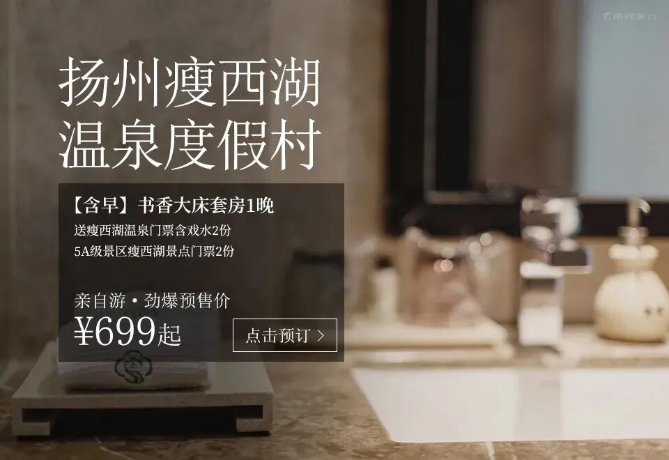 平时日历房直接订一晚得800+,暑期更贵,现在预售含温泉含瘦西湖的门票,更显给力了。
