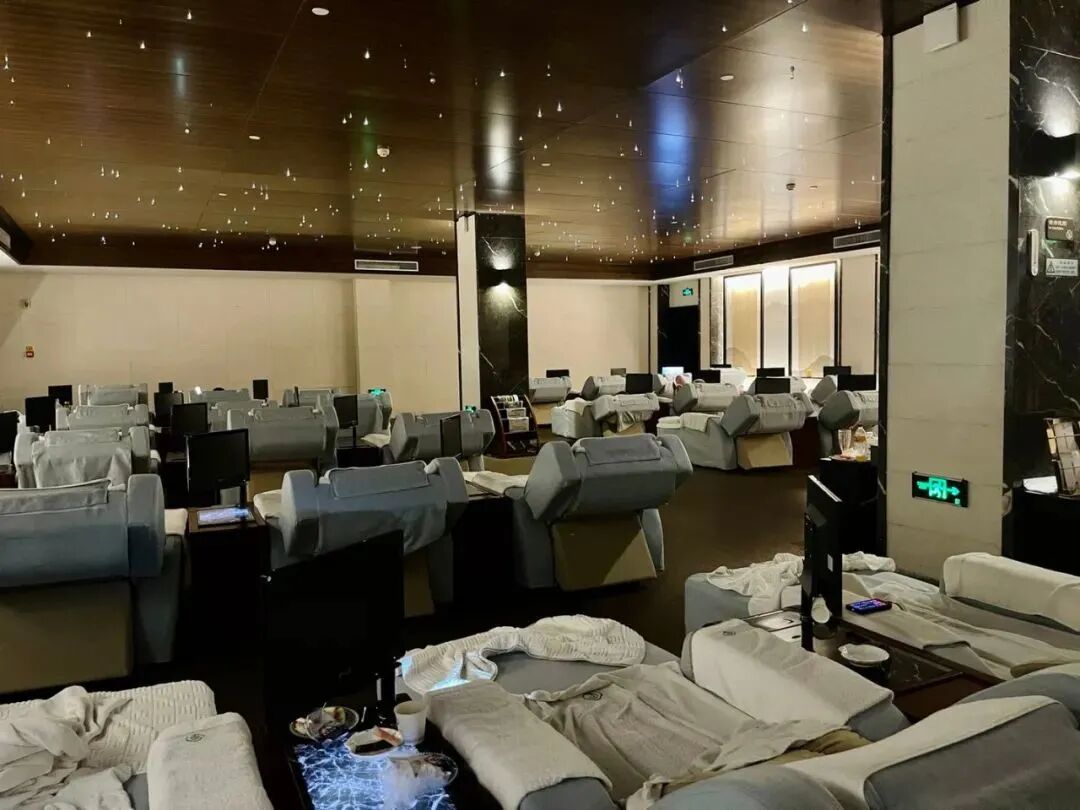有和扬州中医院共同打造的特色中药温泉浴,有边做足底冲浪边看剧的按摩池,有额外付费的私享汤屋,有以古代美人为灵感打造的美人四润汤,你甚至还能在麻将池里搓麻......