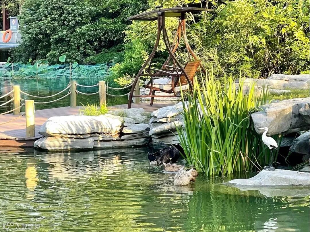 这些都是程老师我的随手实拍,环境真的好棒!湖上甚至还有专门摆放的小船与仙鹤,随风好像要飘荡起来。