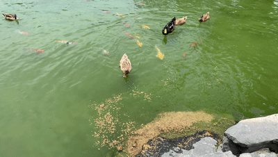 每天下午工作人员都会来喂鸭子喂锦鲤,鸭子超通人性,看到投喂就火速游过来,小朋友也可以围观,看着可开心了。