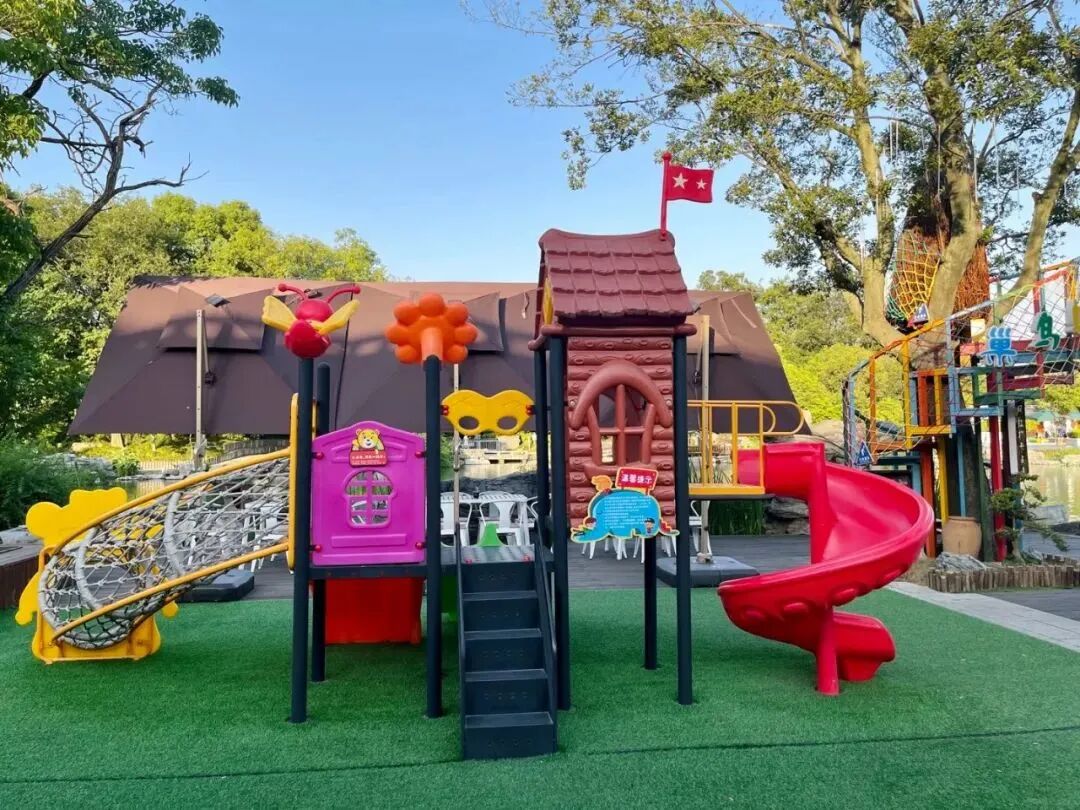 室外乐园正好挨着温泉区与池塘,还能看到小鸭子的家呢。