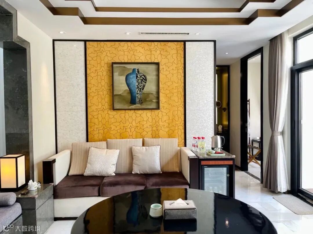 这个房型我一开门就相中了,超大超豪华,100平米起步,有2个卧室+2个浴室+1个客厅+1个私汤庭院。