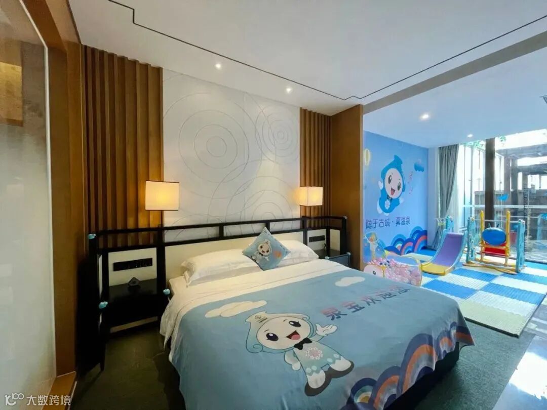 第二个套餐房型再升一级,到亲子私汤豪华套房,看名字就知道了,这个房间是有私汤的,更适合带娃的家庭。