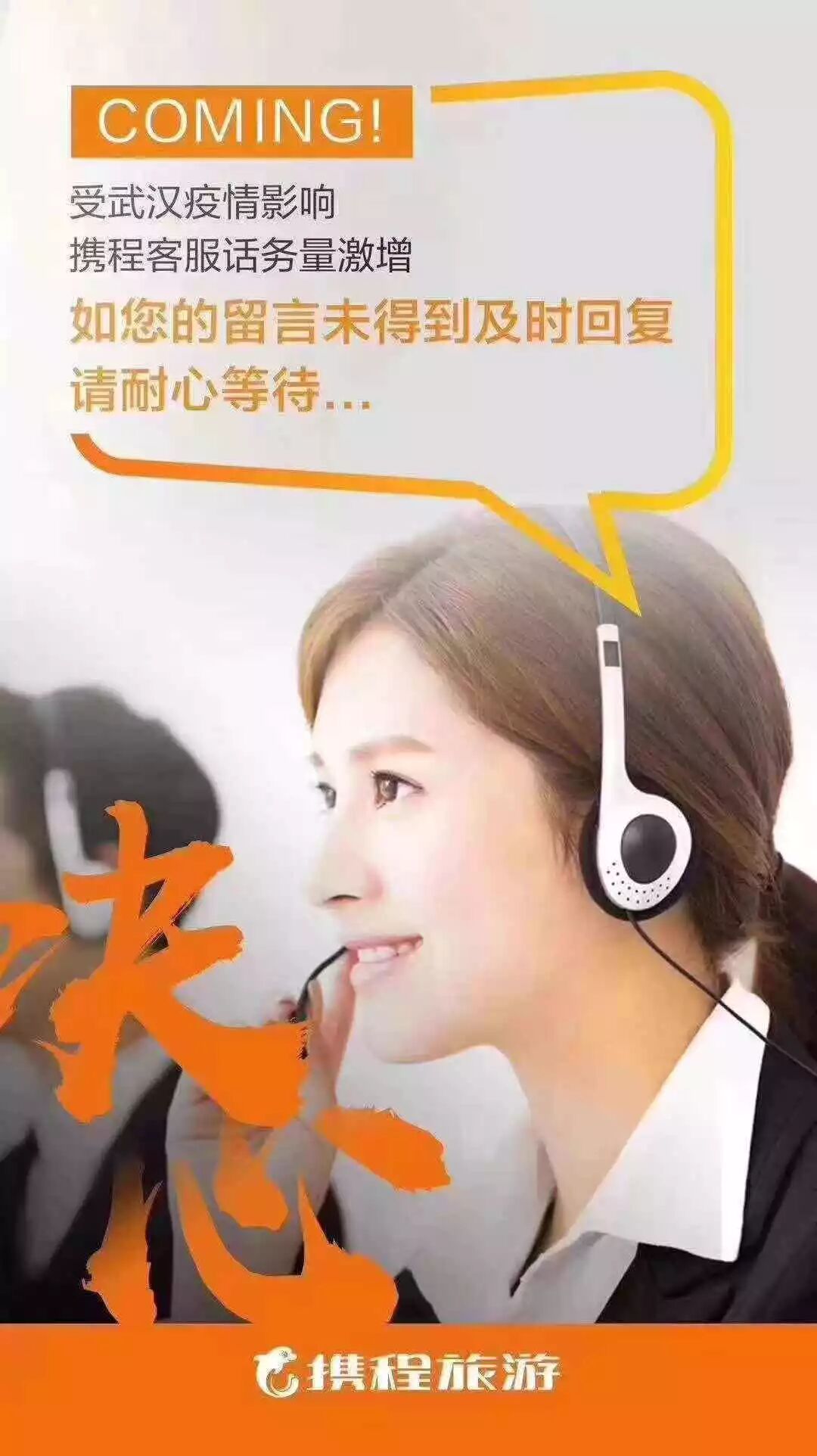 从1月19日起,携程机票服务部的小伙伴已经在逐渐感受几何倍数增长的咨询量,退订量,100%的加班率,一天超出几倍的预测量让大家倍感压力,但却斗志满满:“我们是谁-携程客服”,“我们要做什么-为天下苍生守护行程”,这是我们始终如一的初心,这是我们2020新征途的誓言。
