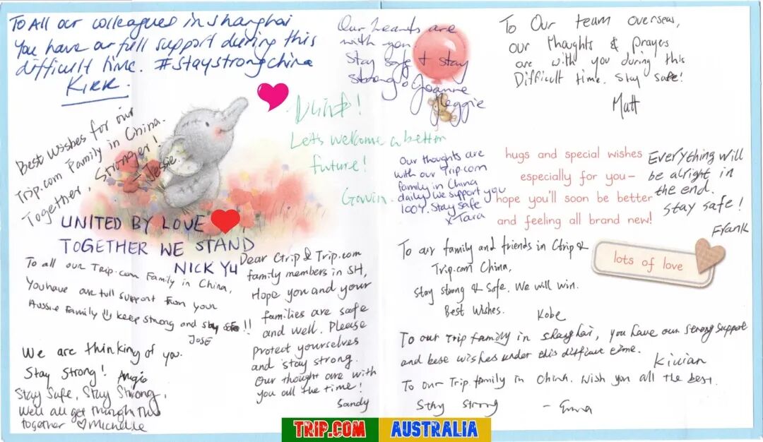 澳大利亚分公司通过手写祝福的方式,传来了他们的温暖: