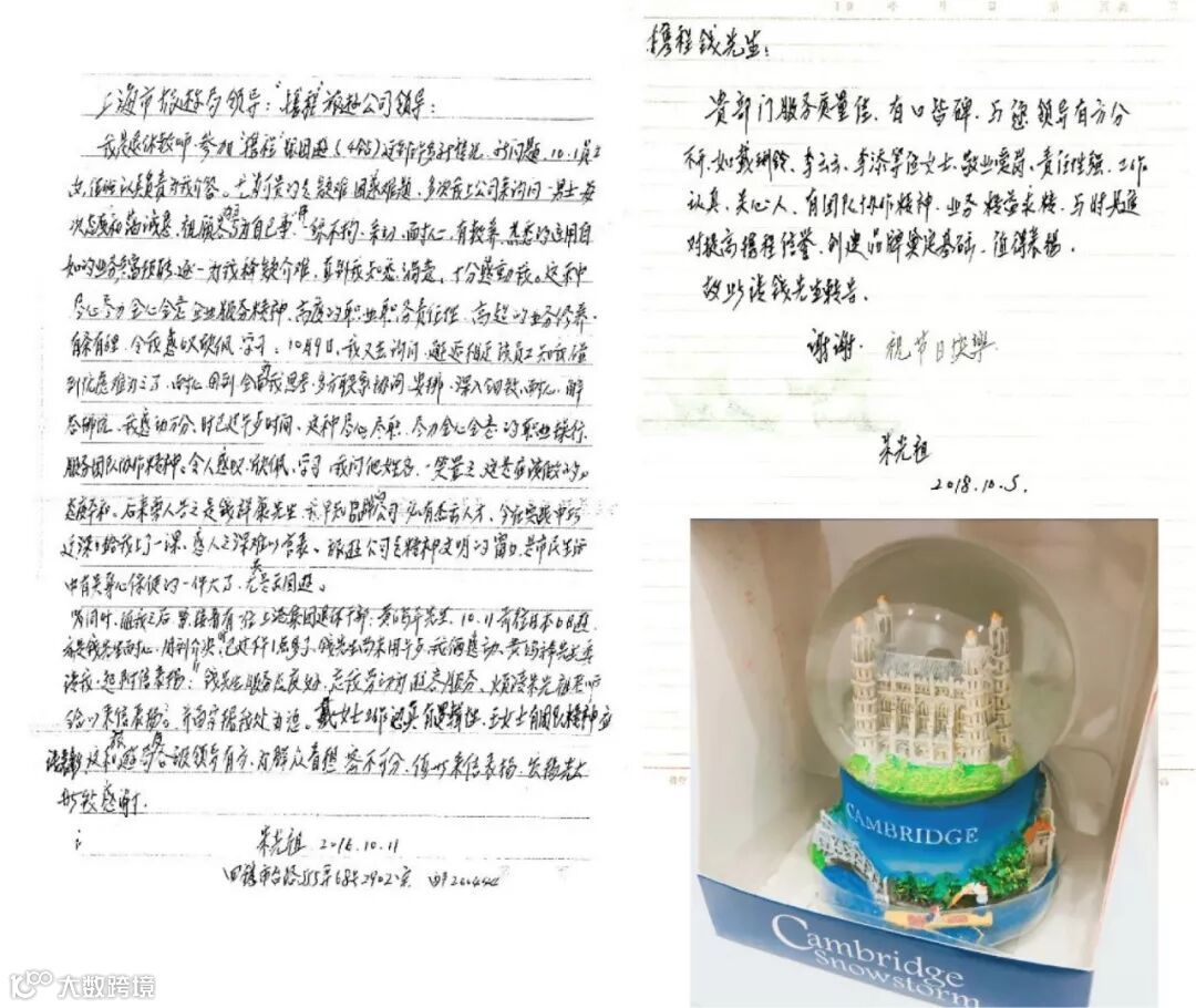 老爷爷亲手写下的表扬信和旅行带回的小礼物