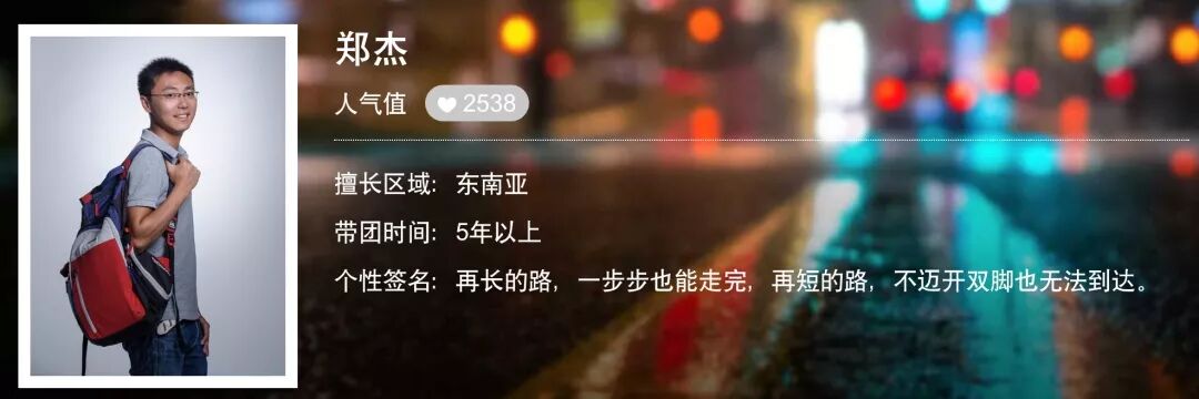 4月21日是中国领队郑杰特殊的一天。他作为携程领队带团时间已经5年以上,擅长区域就是东南亚,在携程APP出境游“领队之家”的个人主页上,他的人气值达到2538,他带过的团队客人留下了长长的好评信息。