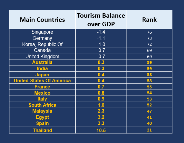 最亮眼的是泰国,国际旅游已对该国GDP贡献达10.5%。