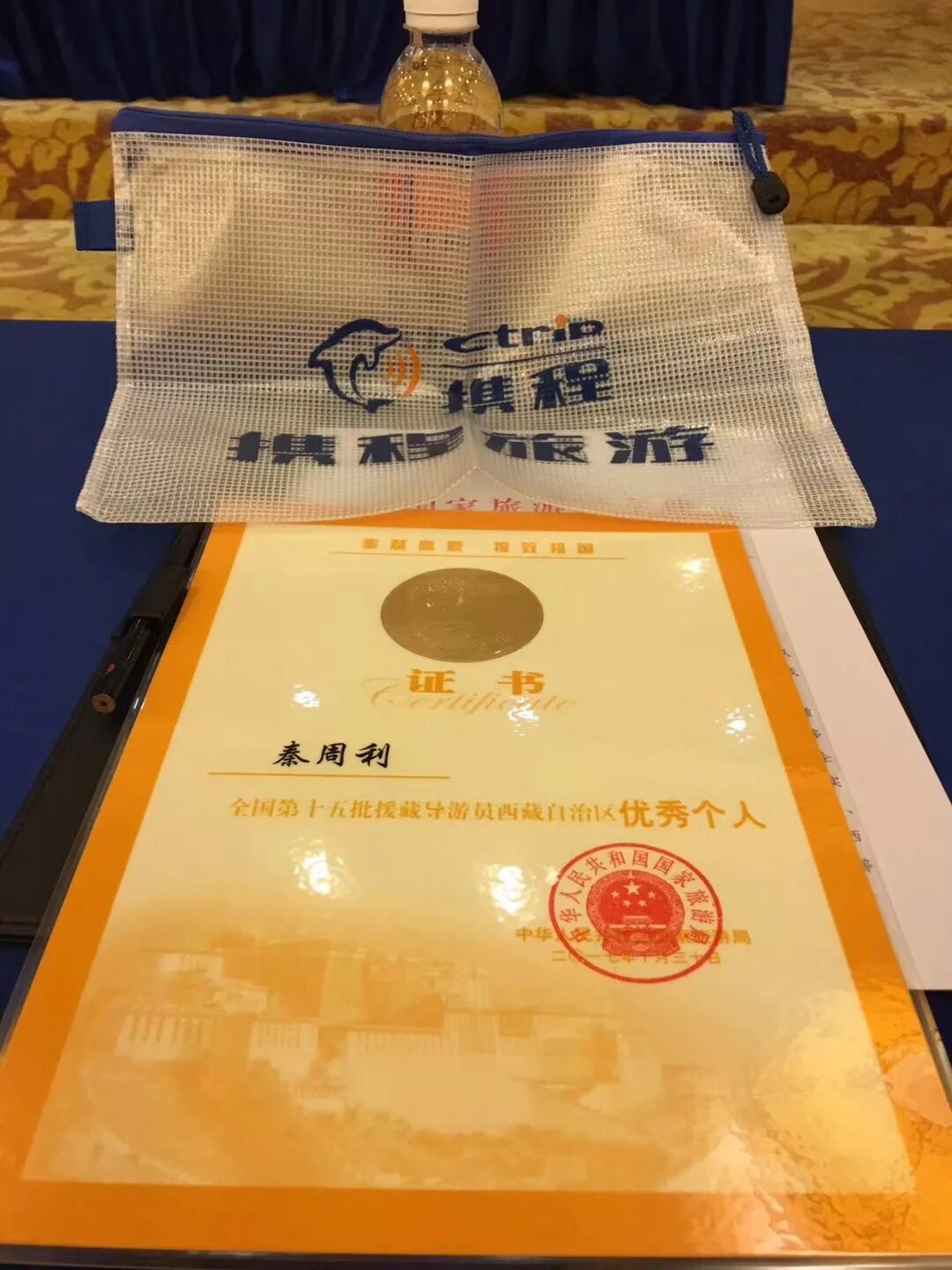 信中写到:“携程旅游选派秦周利导游员,代表上海援藏工作,克服高原反应,经受了西藏地区复杂而艰苦的地理环境考验,以热情、周到、专业的工作态度接待境内外游客、受到广泛赞誉,被西藏自治区评为第十五批援藏导游员优秀个人。充分展示出上海旅游人的职业素养和敬业精神,也体现出携程公司支持国家西部建设、热心社会发展的企业文化和社会责任。”