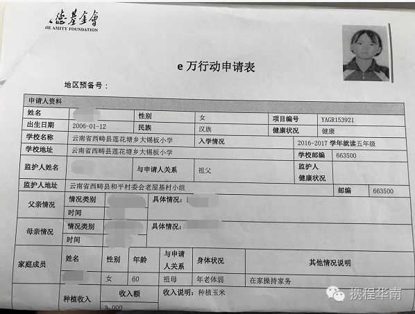令我印象最深刻的就是她是个特别有爱心的姑娘,(说着掏出手机打开微信聊天指着一张图片对我说)这就是她之前发给我的她跟她朋友一起参与的公益项目【e 万行动】资助的表,一直鼓励我也进行资助。而且本次托业奖金,她也是要用来做公益的。