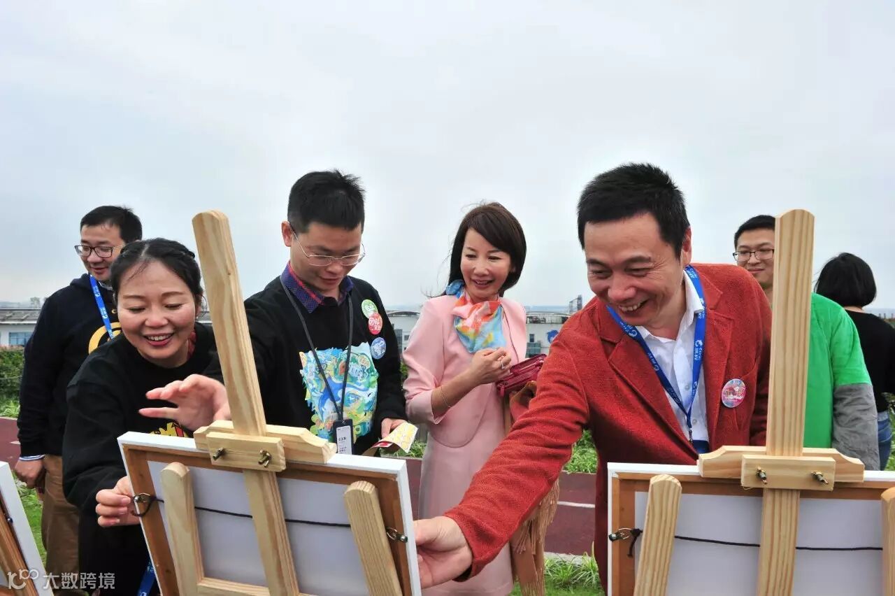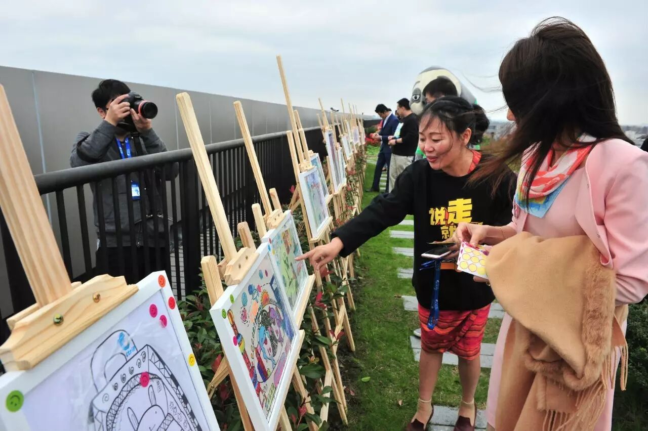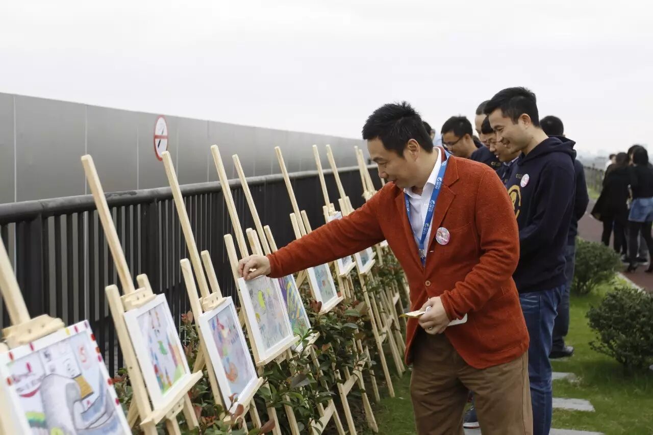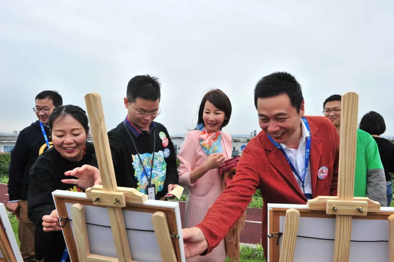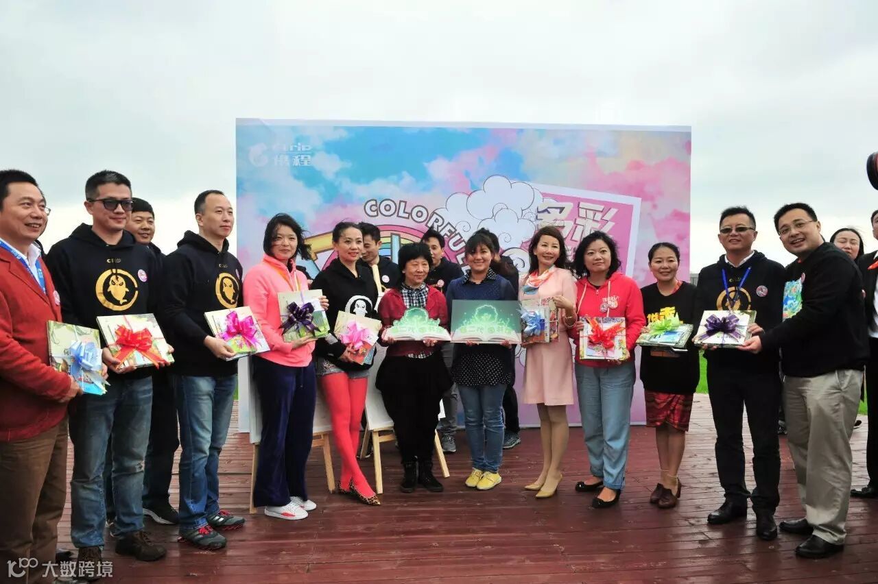高管们欣然挥毫做画,描绘17岁少年携程的别样姿彩。现场还举行了“程二代”图书馆的捐赠仪式。