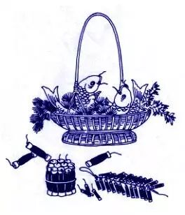 爆竹、民间玩具、鱼;儿童抱鲤鱼