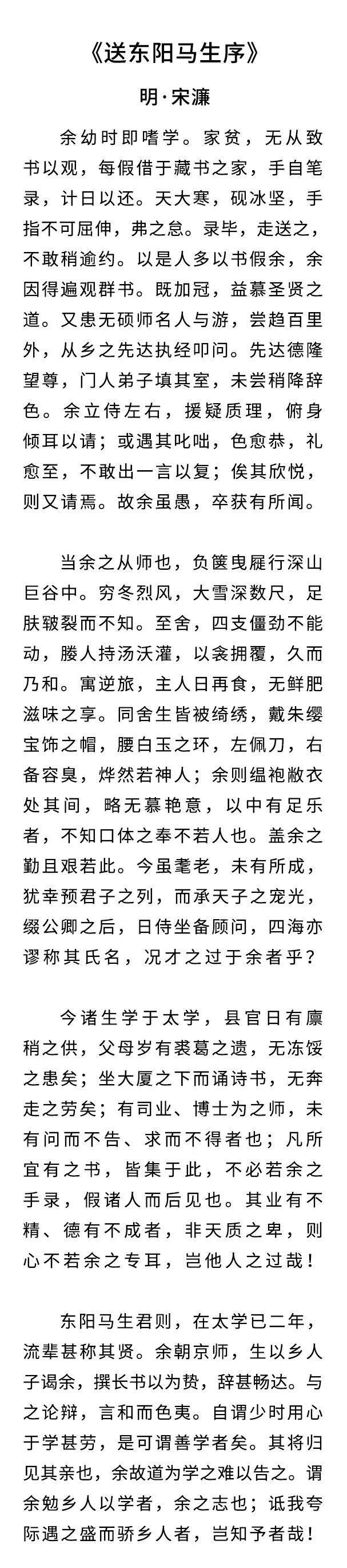 宋濂在《送东阳马生序》里,详细说了一段自己外出求学的经历。