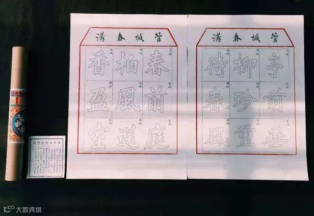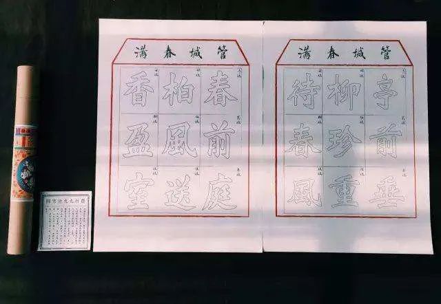 “写九”的文化味也是很浓的,往往用“亭前垂柳珍重待春风”或“春前庭柏风送香盈室”九字(当然是繁体),先双钩成幅,从头九第一天开始填写(类似书法练习中的“描红”)。