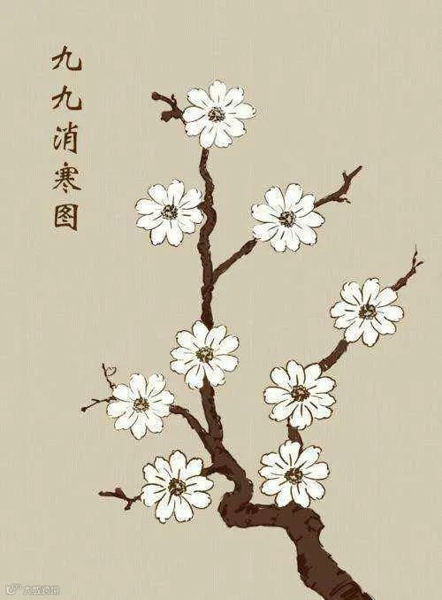明代《帝京景物略》载:“冬至日,画素梅一枝,为瓣八十有一。日染一瓣,瓣尽而九九出,则春深矣,曰九九消寒图。”