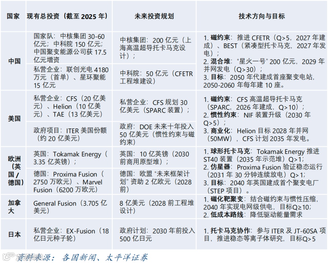 各国的资本开支是投资可控核聚变预判的前瞻性指标。目前看美国、欧洲等海外地区已通过私营企业融资与政府项目加速推进,国内未来五年或将进入投资密集期,各国争先发展。