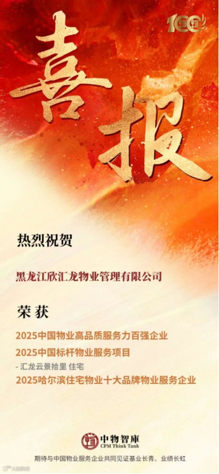 欣汇龙物业多年来始终坚守服务初心,深耕龙江市场,致力于通过专业化、标准化、智能化的服务,持续提升业主的幸福感和获得感。此次连获三项国家级、区域级权威认可,不仅是对企业过往成绩的肯定,更是对其未来发展的鞭策。本次发布会及研究成果的发布,为物业行业树立了高质量发展的风向标。欣汇龙物业的优异表现,展现了东北地区物业服务企业的强劲实力与进取精神,也为推动区域乃至全国物业管理行业的提质升级贡献了标杆力量。