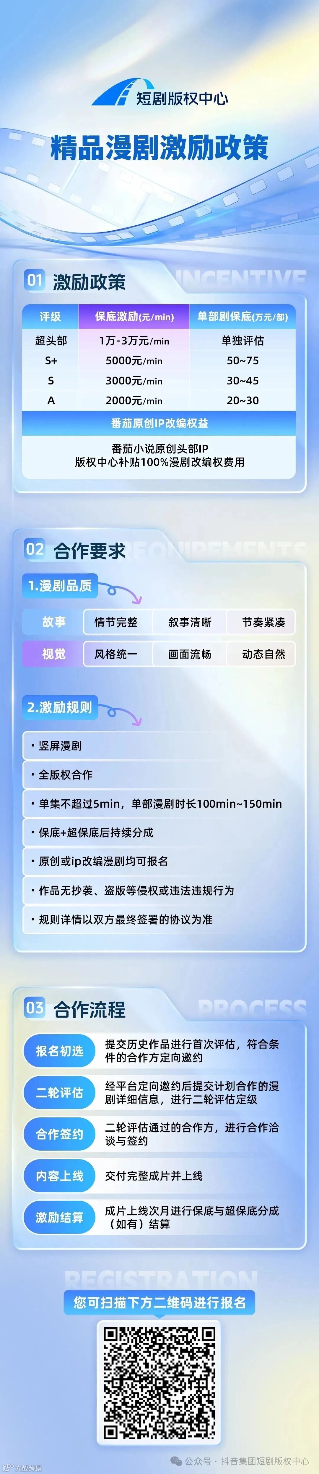 1. 抖音漫剧激励更新:保底激励3万/min,全额补贴番茄头部IP改编