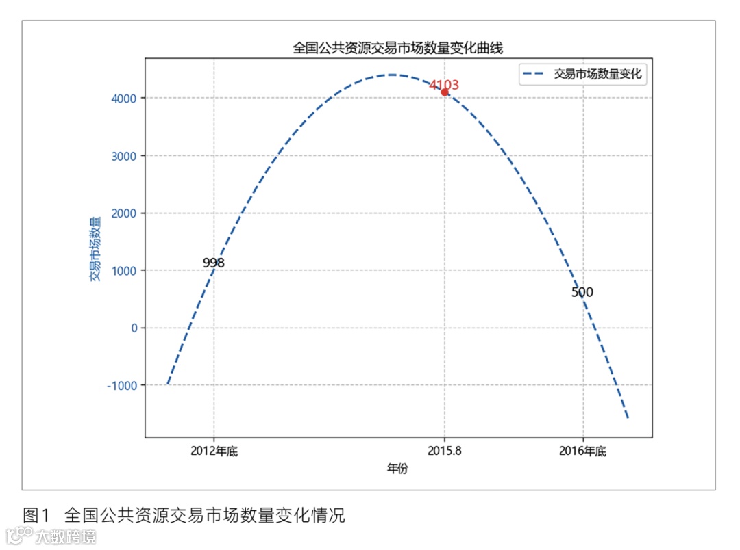 经查询,2012年底,全国公共资源交易市场共988个,其中省级13个、地市级198个、县级777个。交易市场编制内从业人员总数12081人,比整合前减少1654人。截至2016年底,全国各类公共资源交易市场从4103个整合为500多个,交易市场数量减少了85%。相关变化情况如图1所示。