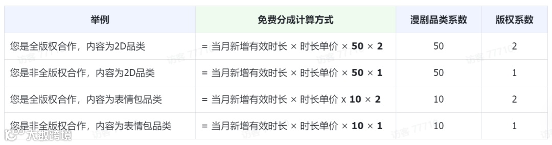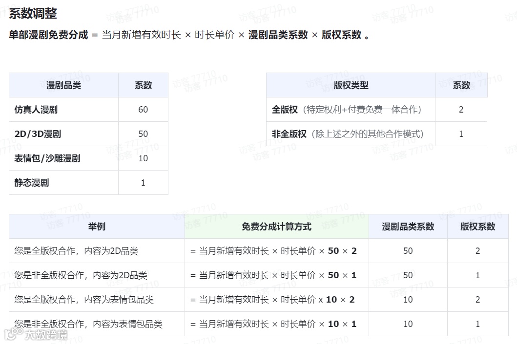 「单部漫剧免费分成=当月新增有效时长x时长单价x漫剧品类系数x版权系数」。