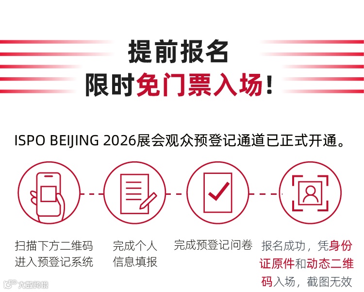 亚洲运动用品与时尚展(ISPO BEIING 2026)将于2026年1月9-11日在国家会议中心·北京如约而至,以冰雪户外、骑跑、交互、科技、可持续为主题,汇集冬季运动、登山徒步、露营自驾、运动科技与新材料、骑行、跑步、城市运动、攀岩等板块的最新趋势与创新成果。