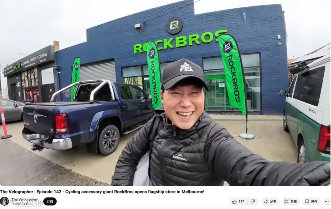例如RockBros的澳洲首家实体店开幕时就邀请了当地的华裔骑手,他经营着一个名为The Velographer的骑行频道,虽然只有7320个粉丝,但在当地的骑行圈子里却有一定的影响力,邀请他来参加开业活动,对于品牌在澳洲的线下门店生意有很不错的帮助。
