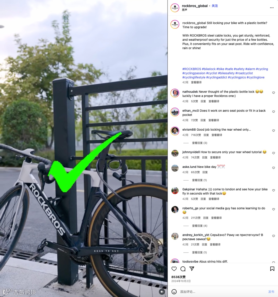 但通勤导航、恶劣天气、防晒手套和眼镜、轻便收纳等,正是骑行人群需求最刚需的部分。RockBros的内容贴近场景且充满真实气息,极易获得观众共鸣,并引发转发与互动。