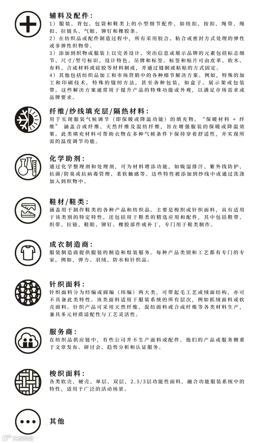 在消费升级与科技革新的浪潮下,功能性纺织品行业正展现出强劲的发展势头与全新趋势。功能多元化与精细化成为一大关键走向。轻户外概念的火爆,促使户外运动面料从传统功能向轻量化、多功能及跨领域设计延伸。科技赋能为行业注入活力,智能交互纺织品崭露头角。绿色可持续贯穿全产业链,从生物基材料、再生纤维的使用,到环保生产工艺、产品回收体系的构建。年轻消费群体崛起,追求个性化、品质化与科技感。