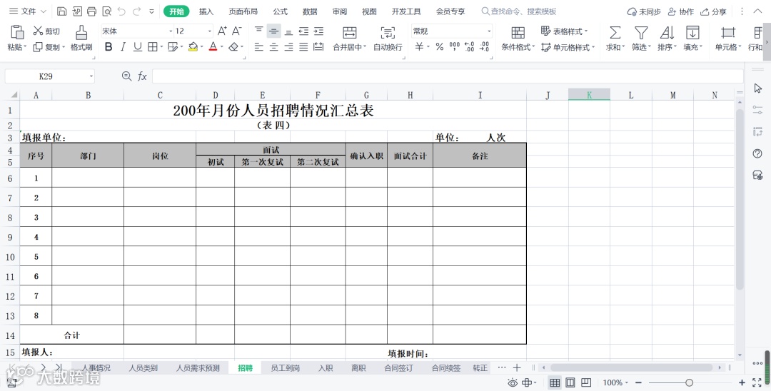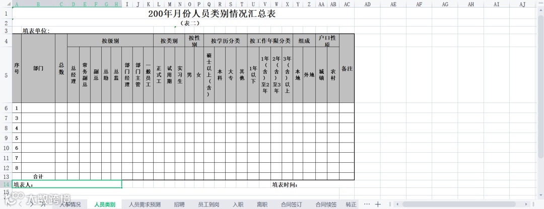 通用人事月报模板(16表全集)