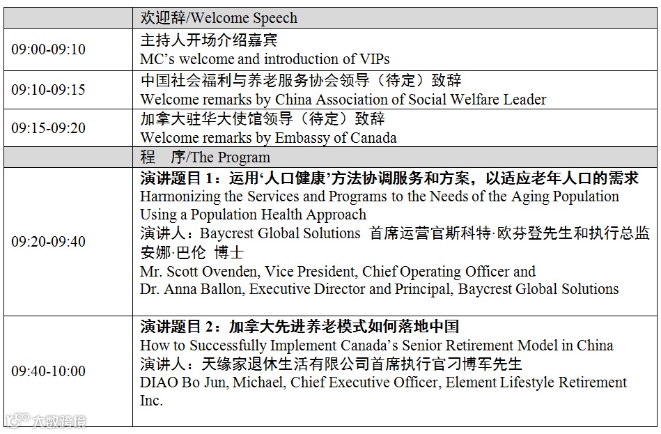 中加养老合作论坛日程