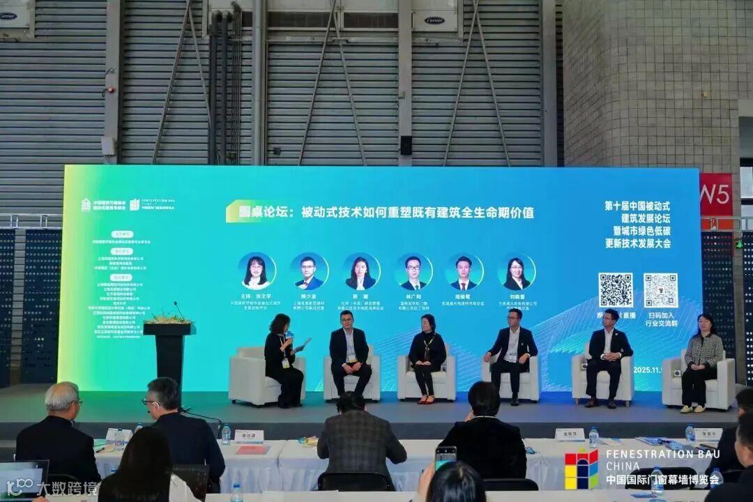 市场部总监周骏骜受邀参与圆桌论坛《深度耦合·再生共赢:被动式技术如何重塑既有建筑全生命期价值》,从光电建材事业部的方法论出发——以尊重建筑为前提,以安全与美观为核心,同时关注不同应用场景的经济性,尤其是全生命周期的经济性——与行业专家共同探讨光伏建筑一体化的未来方向,并带领中国建筑节能协会被动式建筑专委会走访固德威展区,深入了解固德威光电建材系列产品。