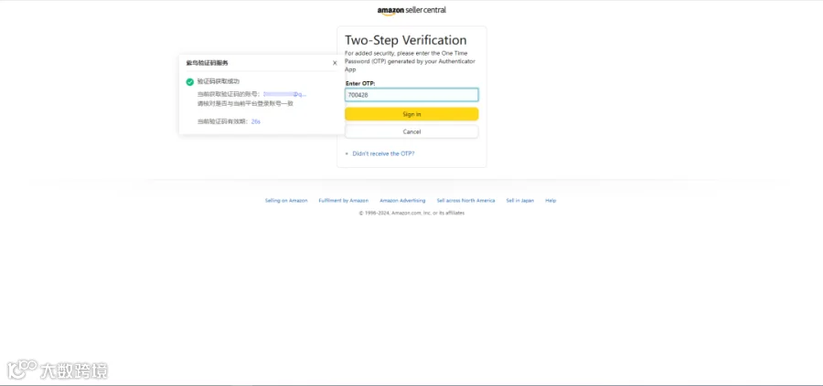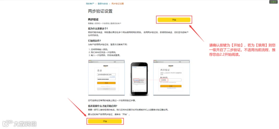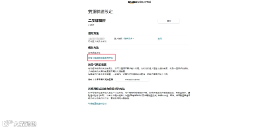 若您的亚马逊账号店铺后台已开启手机短信二步验证,则通过以下步骤进行配置