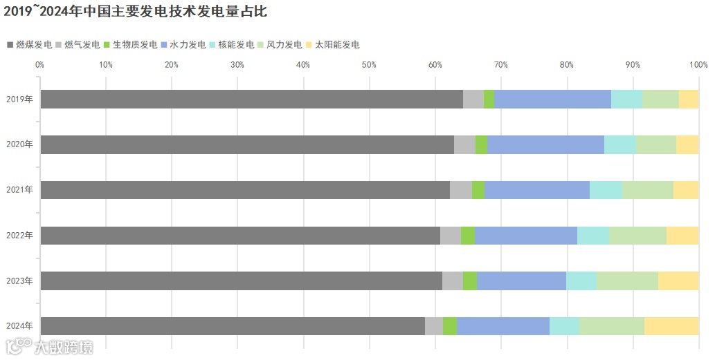 首当其冲的当属电源结构不断清洁化,2024年燃煤发电量占比同比下降超过3%,风电和太阳能发电量合计占比同比增长2.70%,水电发电量占比同比增长0.45个百分点。