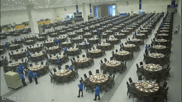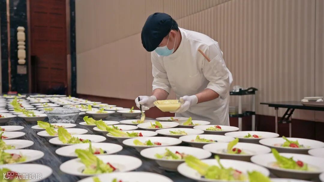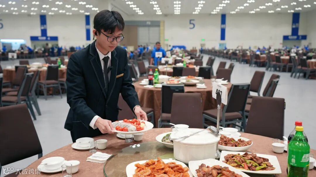 23日当天的用餐峰值,更是将这场餐饮保障的难度推向顶峰。当日接待1550桌近13000人的围餐用餐,中午6000人用餐完毕后,服务团队需立刻投入紧张的翻台工作,无缝衔接晚间6300人的晚宴接待,从餐台布置到餐具更换,每一个环节都容不得半点差错。