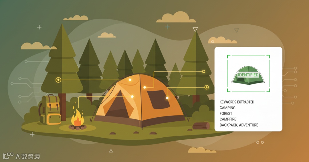 例如,一个帐篷置于森林营地中,伴有篝火与背包,AI会自动打上“野外露营”“户外探险”等标签;若出现在草坪派对场景,则可能被关联至“家庭聚会”“遮阳”等需求。