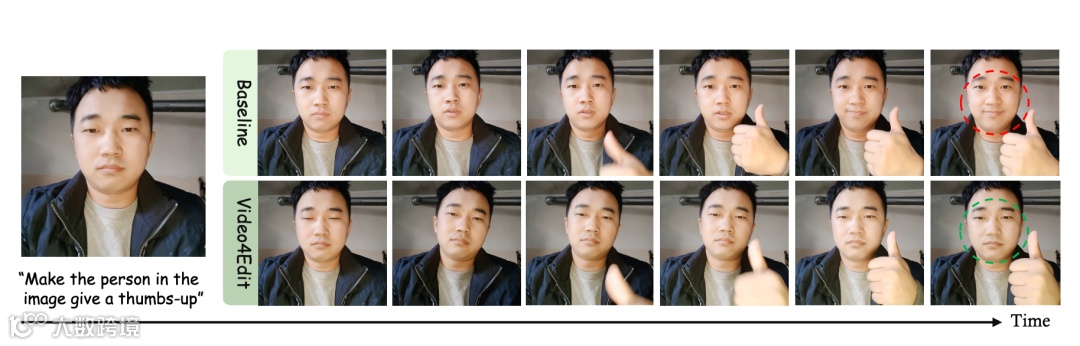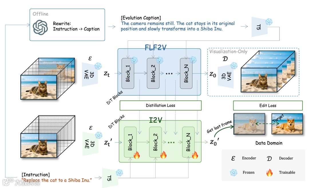 Video4Edit将图像编辑重新定义为视频生成的特殊退化形式——即把源图像视作第0帧、编辑结果视作第1帧,建模为一个2帧极短视频生成过程[2]。