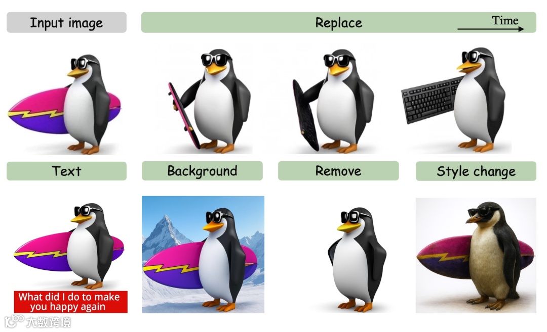 在风格迁移中,能精准捕捉目标风格(如油画、赛博朋克),同时保留源图结构;在物体替换中(如“猫→狗”或车辆换色),实现自然语义融合与高质量边缘处理,伪影极少[4]。