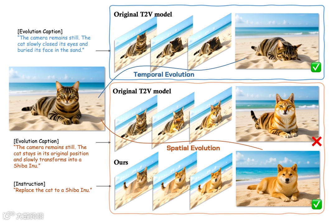 团队依托视频预训练模型中蕴含的单帧演化先验(Single-Frame Evolution Prior)。该先验在大量视频上习得时序一致性与帧间演化规律,天然融合结构稳定性与语义可变性[3]。