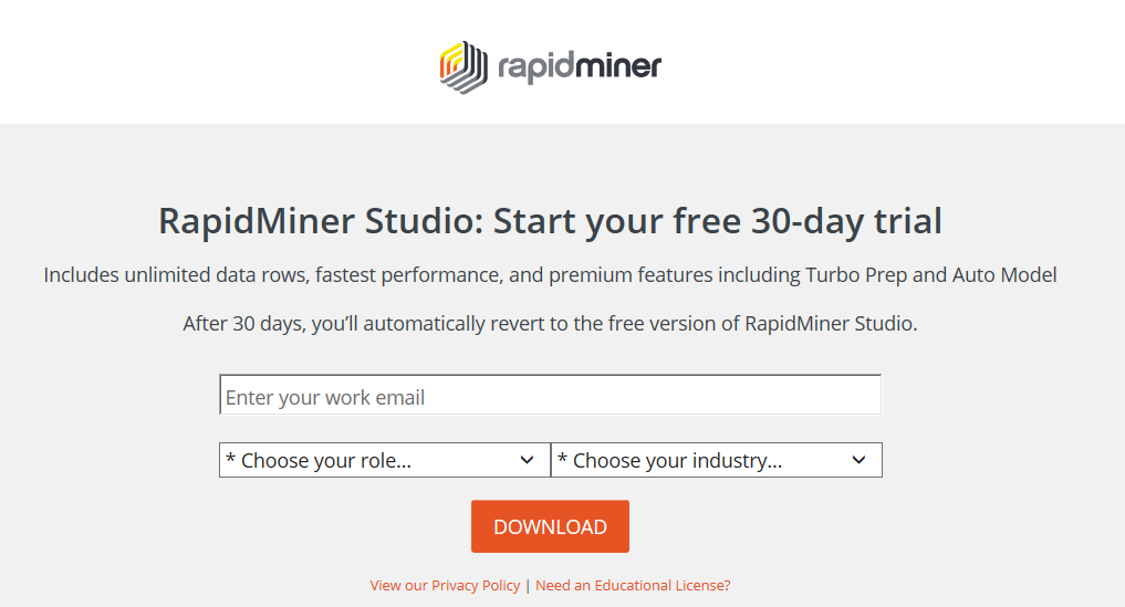 RapidMiner是一款端到端的企业级数据挖掘平台,核心优势是“全流程覆盖”,从数据接入、预处理、建模、评估到模型部署,都能在一个平台上完成。它兼顾了SPSS Modeler的易用性和Python的灵活性,还支持大数据处理,是中大型企业的常用工具。