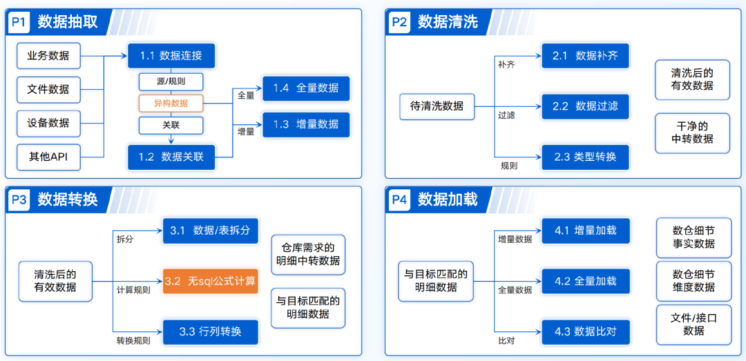 - 低代码+双核引擎,新手也能快速上手:它采用可视化的流程化操作,不用写复杂代码,数据开发人员拖拽组件就能完成数据整合流程。同时搭载ETL、ELT双核引擎,简单场景用ETL快速处理,复杂场景用ELT将计算压力转移到数据仓库,灵活适配不同业务需求。