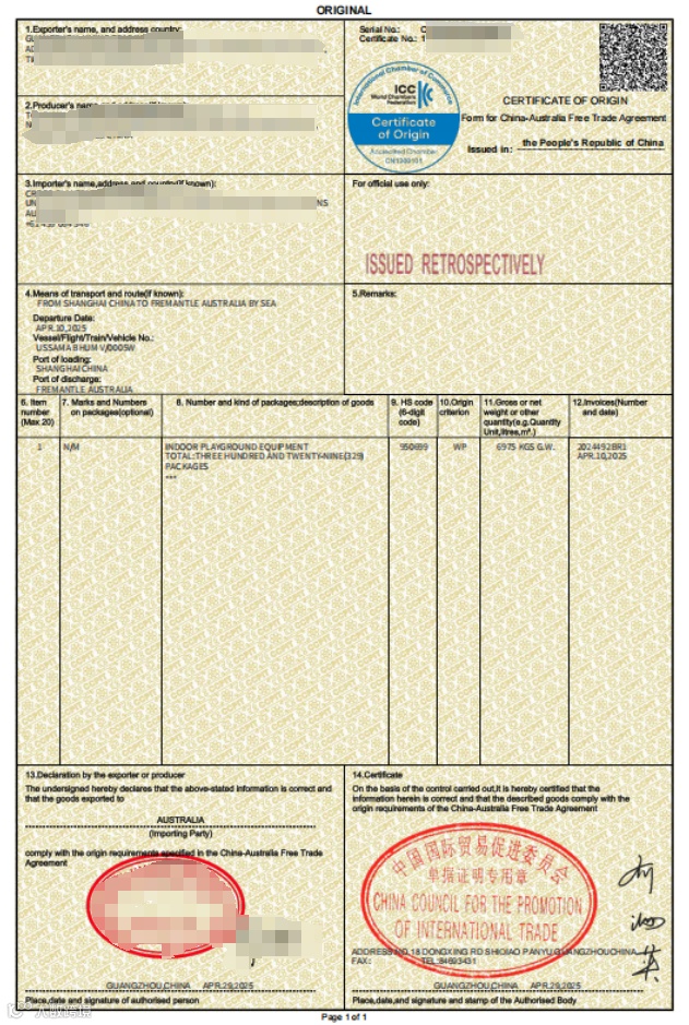 • 享受中澳自贸协定零关税待遇; • 证书需包含生产者声明[k]。 |