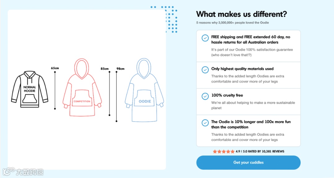 要消除潜在客户心中的疑虑,让用户知道我Oodie是最好的选择。在此处包括USP ,让人们了解为什么我们的产品更好。