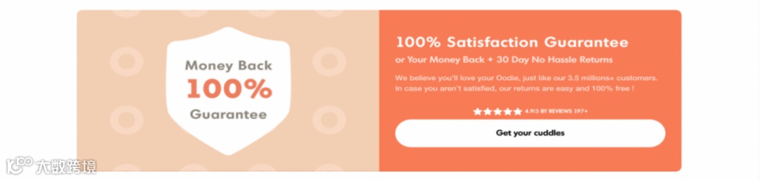 这部分旨在消除潜在客户的异议或焦虑。要让客户在购物时有一种安全感和轻松感。让他们无风险地购买产品。