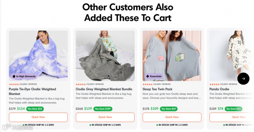 在整个页面中,为购买多种产品的顾客设置了框架。然后在滑块上显示最常一起购买的产品,增加潜在客户购买的可能性。