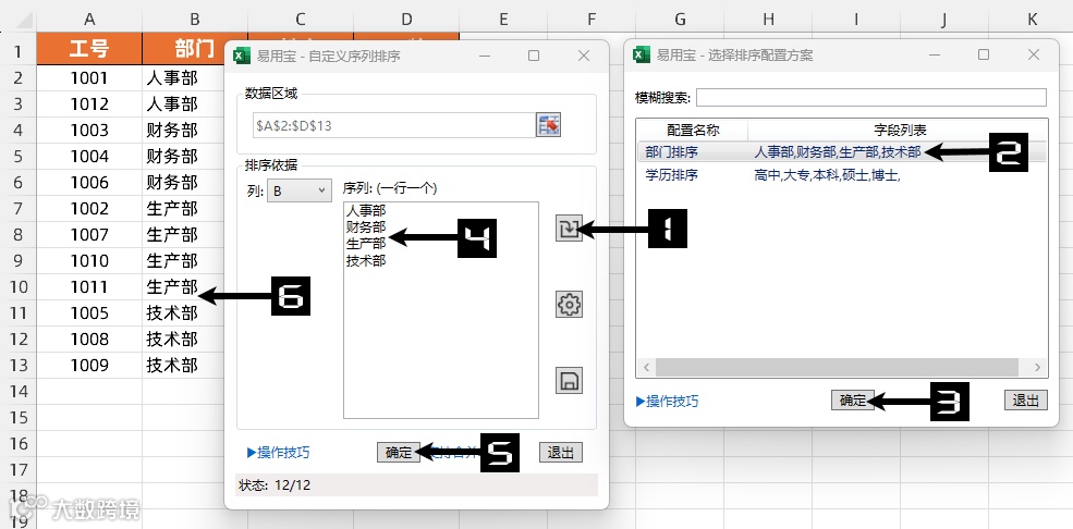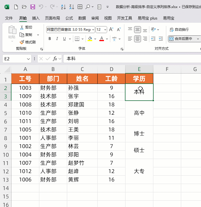 单击【易用宝plus】→【高级排序】→【自定义序列排序】。